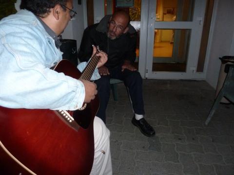 18h: Les résidents qui travaillent reviennent. Puis, c'est l'heure du repas: le menu est le même que celui de midi. Loulette, Rédouane et Pedro, un exilé chilien, musicien se retrouvent pour chanter autour d'une guitare. Bob Dylan, version kabyle clôturera la soirée.
