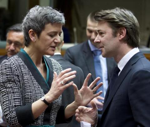 Margrethe Vestager, ministre danoise de l'économie et de l'intérieur et François Baroin, ministre français de l'économie