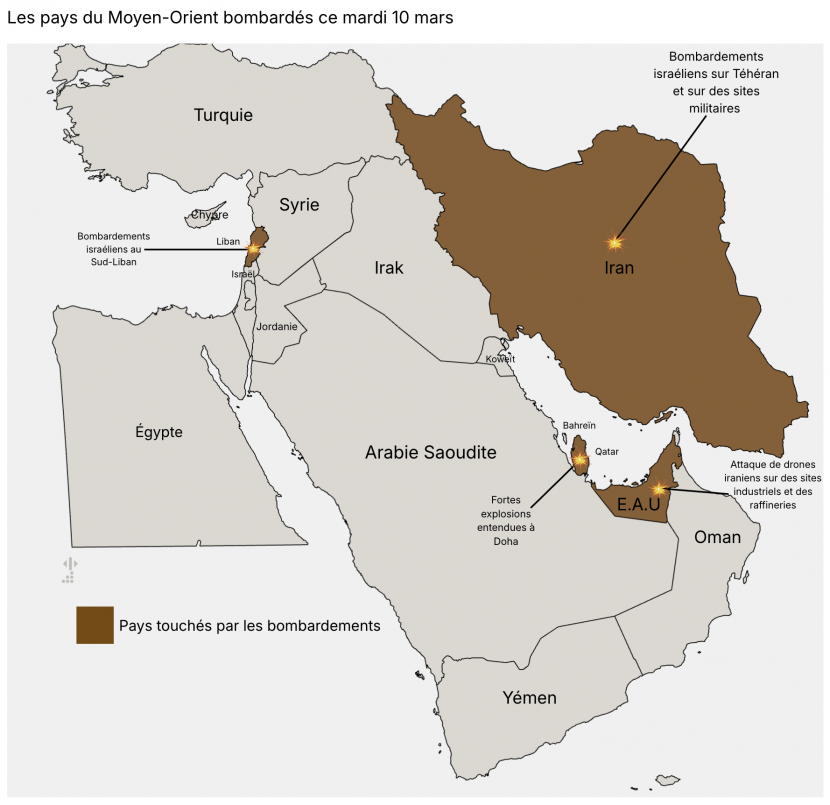 [Live terminé] Les affrontements se sont poursuivis au Moyen-Orient ce mardi. Après des bombardements sur Téhéran, l’Iran a répliqué par une attaque de missiles contre Israël et plusieurs cibles américaines. Plus de 700 000 personnes ont été déplacés au Liban.