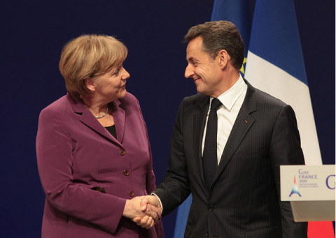 Angela Merkel et Nicolas Sarkozy, le 2 novembre 2011 lors du G20 de Cannes. (francediplomatie/Flickr)
