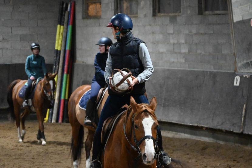 L’odeur de foin emplit les écuries du centre équestre Saint-Hubert à Eckbolsheim, seul club d’Alsace à proposer des entraînements de horse-ball. Comme chaque lundi soir, les joueurs s’affairent autour de leurs chevaux avant de se rendre au manège : étrillage, installation de la selle, nettoyage des sabots. Les règles du horse-ball sont simples. Deux équipes mixtes de six s’affrontent en se faisant des passes afin de marquer des buts dans des filets fixés en hauteur. Tout cela sans jamais descendre de cheval, même pour ramasser la balle au sol.