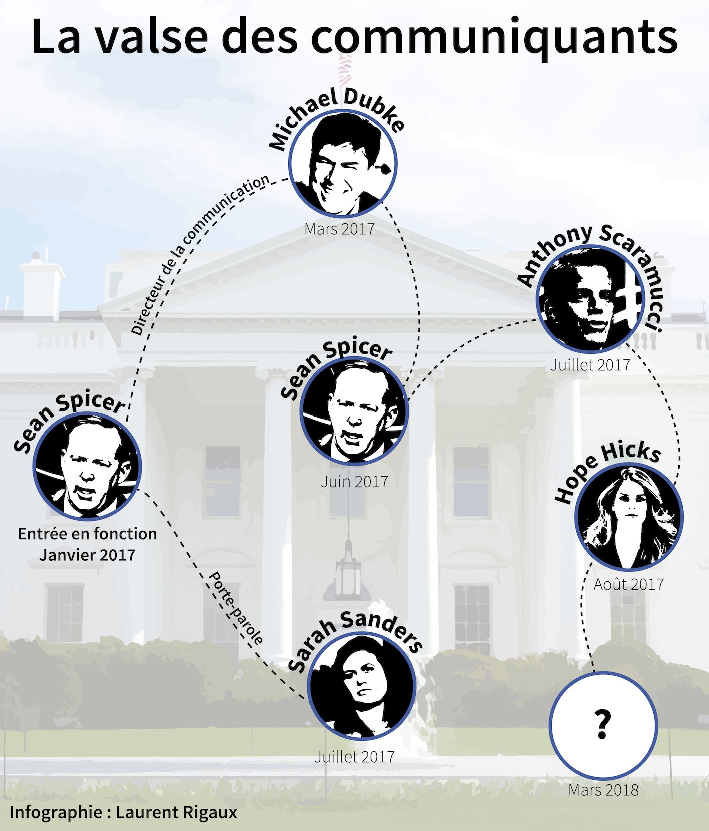 Et de quatre ! Les chargés de communication se suivent mais ne se ressemblent pas à la Maison blanche. Après Sean Spicer, 46 ans, qui avait réussi à se mettre la presse à dos, après le démissionnaire Michael Budke, entrepreneur de 47 ans, après l'éphémère Anthony Scaramucci, financier de 56 ans qui n'était resté que dix jours, Hope Hicks, ancien mannequin proche de la fille aînée du président américain, avait été nommée en août. Elle a réussi, contrairement à ses prédecesseurs, à nouer une véritable relation de confiance avec Donald Trump.