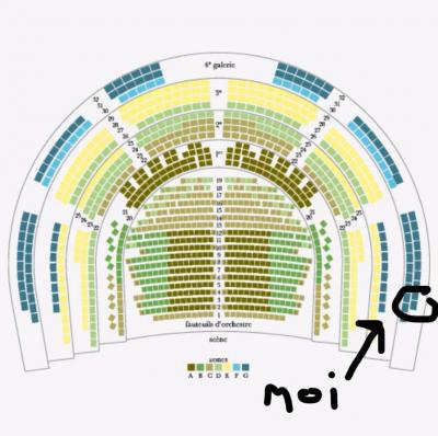 Même incliné sur les sièges devant moi, je ne vois que deux tiers de la scène, toute la partie gauche est dans mon angle mort. J’entends des bruits d'agonie, mais je ne sais pas qui est mort. Des dialogues sont prononcés, mais je ne sais pas par qui. J’ai l’impression de rater une partie de la pièce. Les dernières rangées sont les moins chères, à 7,50 € pour les moins de 28 ans et les demandeurs d’emplois. Les prix grimpent jusqu’à 103 € pour les meilleurs sièges. Toujours selon Les Forces Musicales, le prix moyen d’un billet était de 23 € pour les opéras de région en 2017. Ça va que je ne suis pas de Paris, une place pour l’Opéra Garnier ou celui de Bastille coûtait en moyenne 102 € en 2024 selon la Cour des comptes.