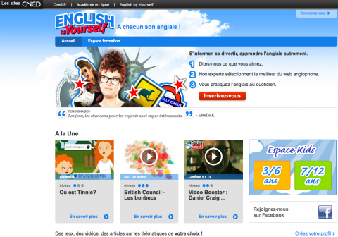 Des jeux, des vidéos, des films en VO...le nouveau site "English by yourself", lancé mardi 7 février par le Centre national d'enseignement à distance (Cned), entend user de tous les moyens pour inciter les internautes de "3 à 99 ans" à améliorer leur anglais. Consultable sur tablettes et smartphones, le site est divisé en deux parties : des ressources pédagogiques, gratuites, et des offres de formations, en majorité payante. Les ressources pédagogiques pour les enfants de 3 à 12 ans sont consultables dans un "espace Kid". Pour les adolescents et les adultes, elles varient selon le profil, le niveau ou les centres d'intérêt que les internautes mentionnent lors de leur inscription.
