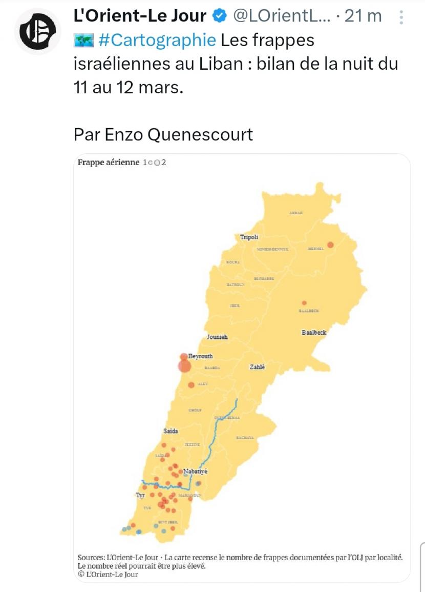 Bilan des frappes israéliennes au Liban. Crédit : X/LOrientLeJour
