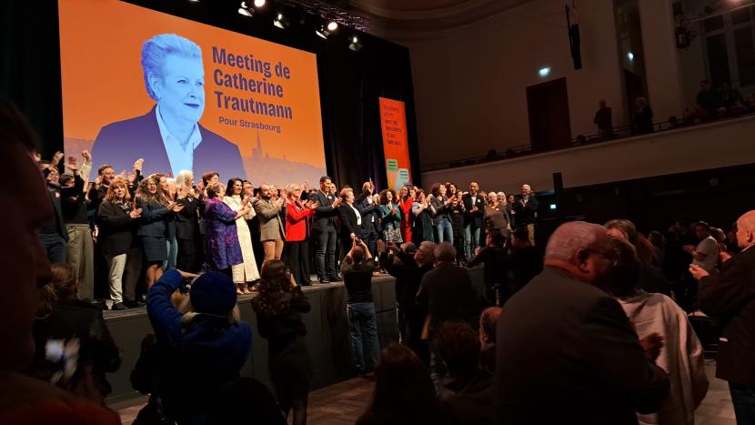 « On fait la course en tête et pourvu qu’on le reste ! » Il est 19h20 au palais des fêtes de Strasbourg ce mardi 10 mars et, dans la salle, 700 personnes sont venues assister au meeting de Catherine Trautmann, la candidate socialiste à la tête de la liste “Pour Strasbourg”. Devant un public impatient et emballé, elle entre sous les applaudissements, au son de Pookie d’Aya Nakamura, malgré la quasi-absence de jeunes dans la salle.