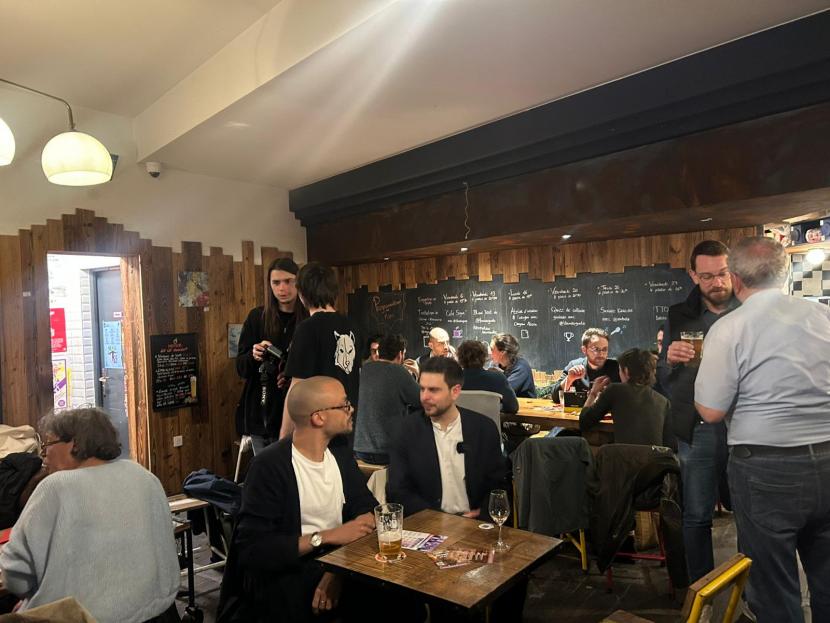 «Cette agression arrive dans un contexte où l’extrême droite a désigné LFI comme étant l’ennemi de la République», explique Florian Kobryn lors de la réunion au Cul-terreux mardi 10 mars. © Camille Carvalho