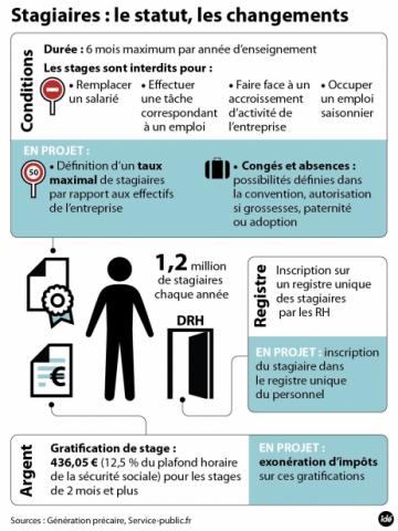 Le texte éxaminé mercredi par l'Assemblée nationale vise à mieux protéger les stagiaires, statut dont de nombreuses entreprises abusent pour se fournir en travailleurs flexibles et pas chers.